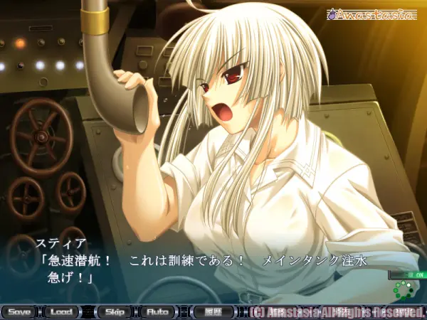 旧軍伝統の伝声管にてクルーに指示を出す副官スティア。指揮も胸もなかなか優秀。