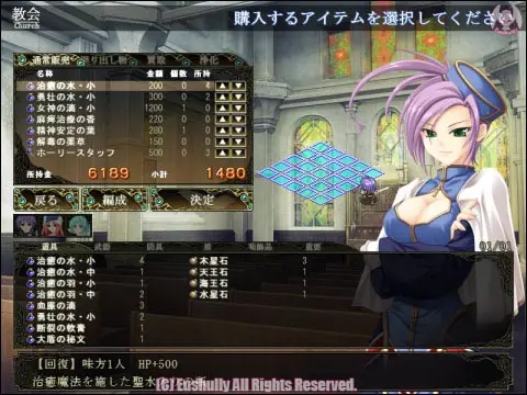 迷宮探索の前に回復品などを事前に揃えていこう。まとめ買いもできるぞ!