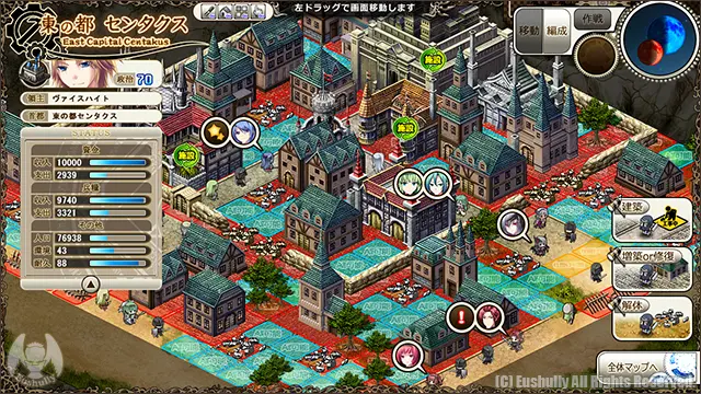 拠点は戦闘マップも兼ねているので、防御設備も充実させていないと敵国に簡単に奪われてしまいます。