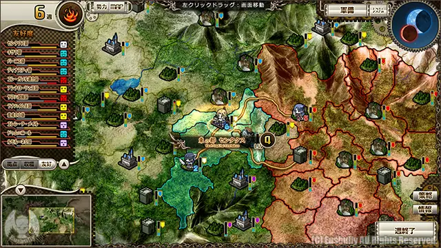 宣戦布告し侵略を行えます。 操作に慣れるまでのチュートリアルを含む序章のあとは、自由度の高いセミフ