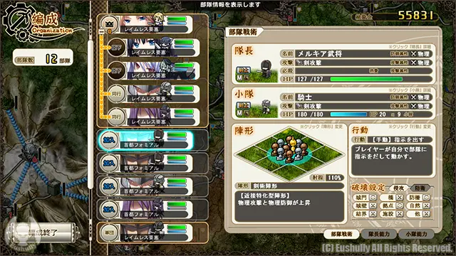 バランスのよい軍団を作りましょう。 軍団は拠点内で一度解散することで二つ以上の軍団に再編成することができます。