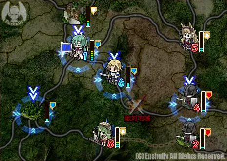 敵対関係にある国家は積極的に自勢力の拠点へ進行してくるので、隣接した拠点には常に部隊を置い