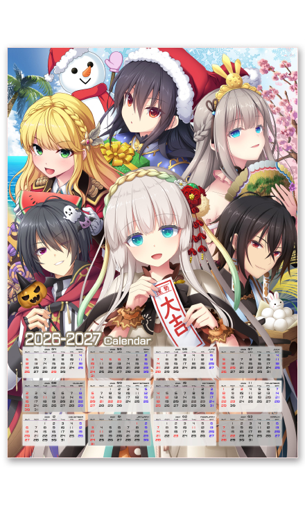 百千の定にかわたれし剋と神採りアルケミーマイスターのキャラで構成されたカレンダーです。